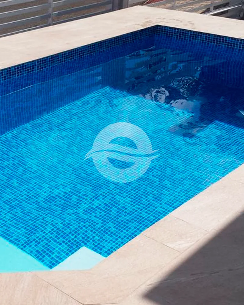 Perfeita para projetos contemporâneos, a Pastilha Miami é a estampa ideal para quem busca um acabamento para piscinas em Tela Armada que se destaca e nunca sai de moda.